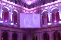 I am very grateful to Paul Clouvel of Elektramusic (http://www.elektramusic.com/) who sent me the following photo showing Pollen, a film by Vishal Shah (music by me) being performed on four large plasma screens at CIUEN, Strasbourg, France in June 2010…