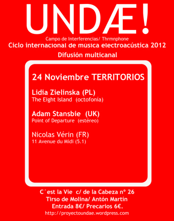 Point of Departure will be performed in Madrid this weekend at UNDAE! A new concert series that is promoting/presenting electroacoustic music. For more information/tickets see: here.