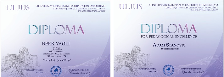 I’m very happy to share the news that Berk Yagli – one of my PhD researchers at UAL – has received third prize in the Uljus Composition Competition, based in Serbia. To my surprise, they also sent me a diploma (to acknowledge my role of Berk’s tutor/supervisor) – that’s a first for me, but actually something that I feel very proud of receiving!